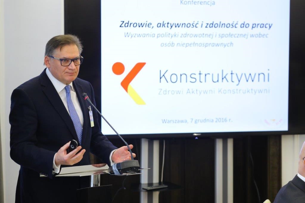 Prof. dr hab. n. med. Bolesław Samoliński, przewodniczący Koalicji na rzecz Zdrowego Starzenia się przedstawił zgromadzonym gościom działania przeprowadzone w ramach projektu „Konstruktywni. Zdrowi–Aktywni–Konstruktywni”, którego celem jest analiza wpływu chorób przewlekłych o podłożu mięśniowo-szkieletowym na obciążenia budżetu poszczególnych państw Unii Europejskiej. Zwracając uwagę na znaczący i postępujący wzrost populacji w wieku podeszłym i podkreślił, że „koszty utrzymania seniora są nawet trzy razy większe niż osoby w wieku produkcyjnym”. Wspomniał ponadto, że osoby niepełnosprawne chcą być obecne na rynku pracy, i chcą być traktowane jak pełnowartościowi pracownicy.