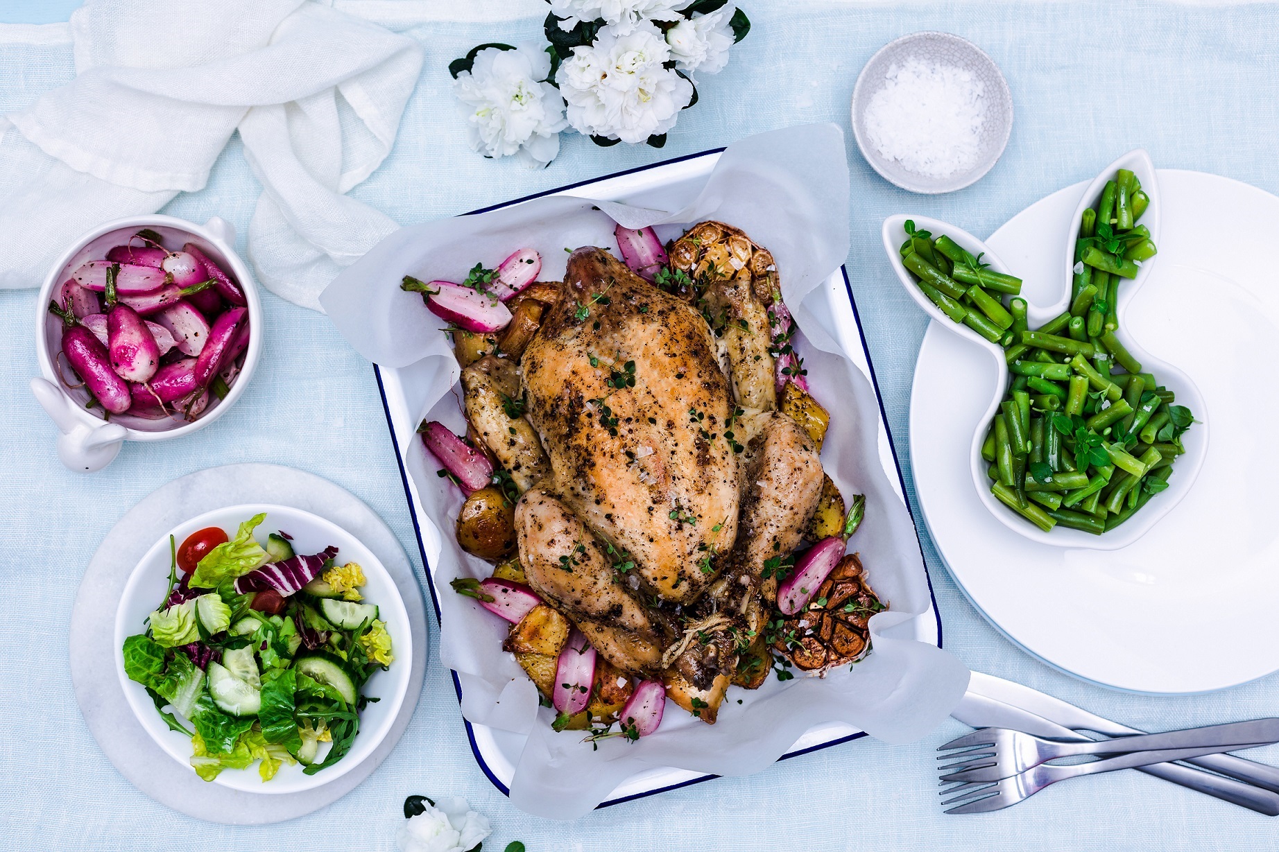 Pieczony Kurczak Zagrodowy z wiosennymi warzywami