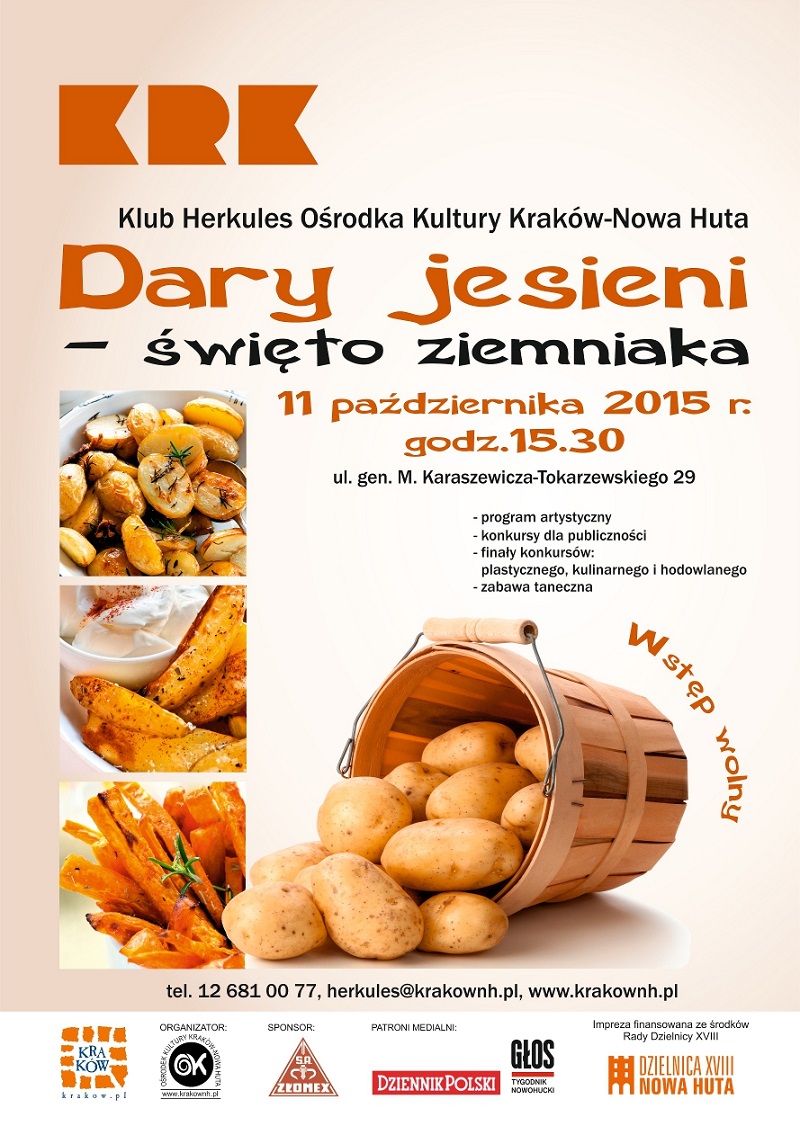 Klub Herkules zaprasza na rodzinną imprezę dla mieszkańców i wszystkich zainteresowanych. W programie liczne atrakcje: m.in. finał konkursów: plastycznego Ziemniaczane cudaki, hodowlanego na najcięższego ziemniaka, kulinarnego na danie główne.