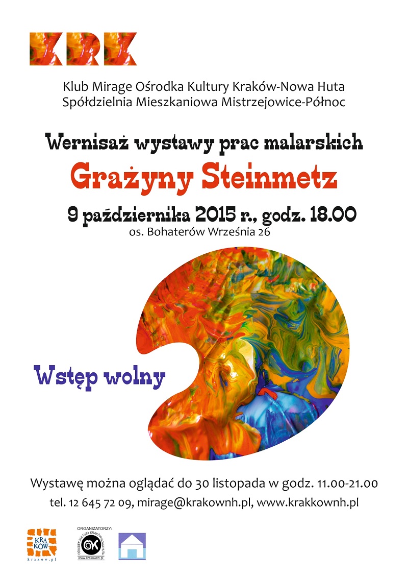 9.10. GODZ. 18.00, WERNISAŻ WYSTAWY PRAC MALARSKICH GRAŻYNY STEINMETZ