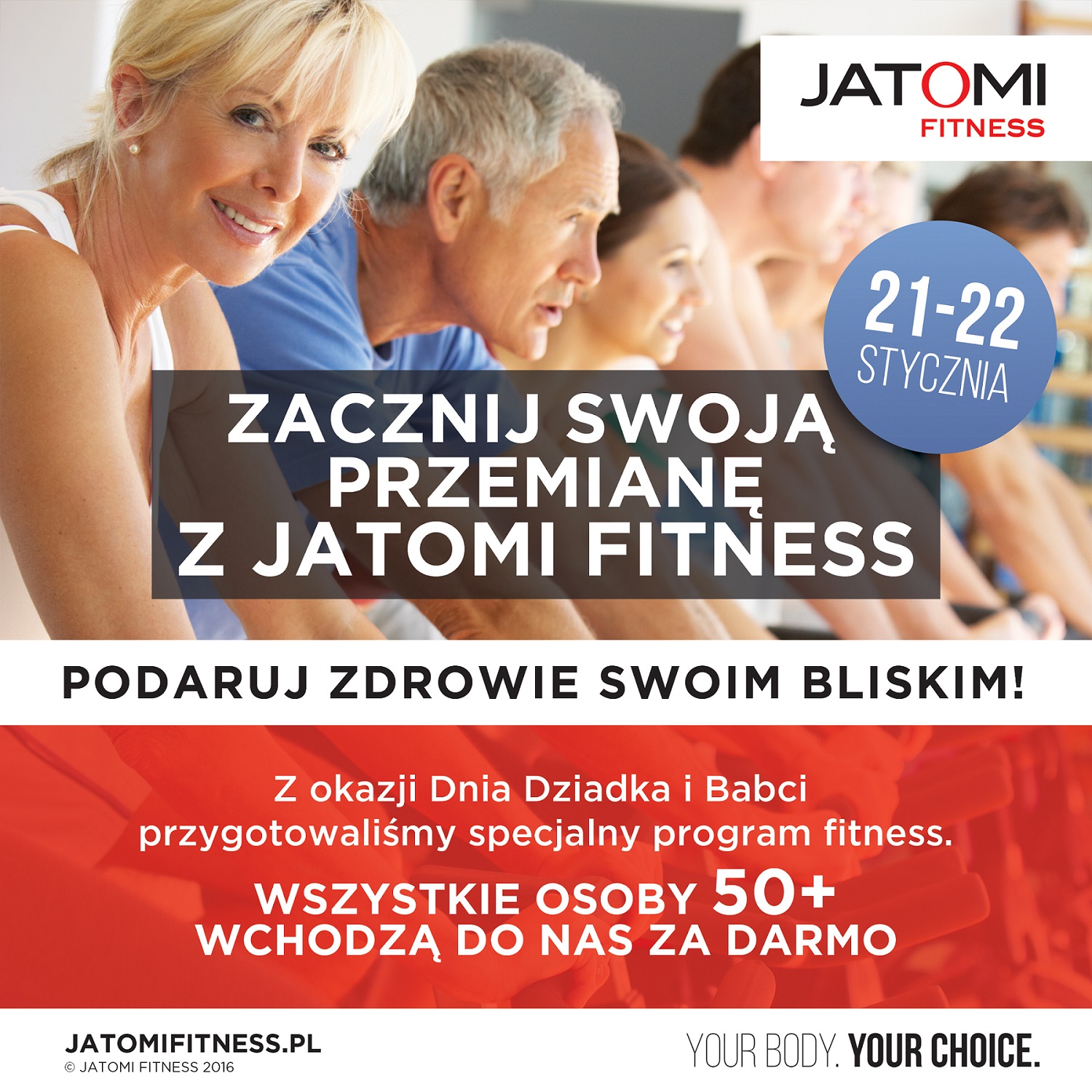 Największa sieć klubów fitness w Polsce – Jatomi Fitness zaprasza wszystkie osoby, które ukończyły 50 rok życia do swoich klubów na darmowe ćwiczenia. Podczas dni Babci i Dziadka we wszystkich klubach Jatomi Fitness, w godzinach 10 - 16 odbędą się specjalne, darmowe zajęcia skierowane do seniorów, m.in. „Zumba”, „Zdrowy Kręgosłup”, „Stretching”, „Joga”. Dodatkowo w klubach dyżurować będą trenerzy personalni, którzy odpowiadać będą na wszystkie pytania odnośnie sportu, diety i zdrowego stylu życia.
