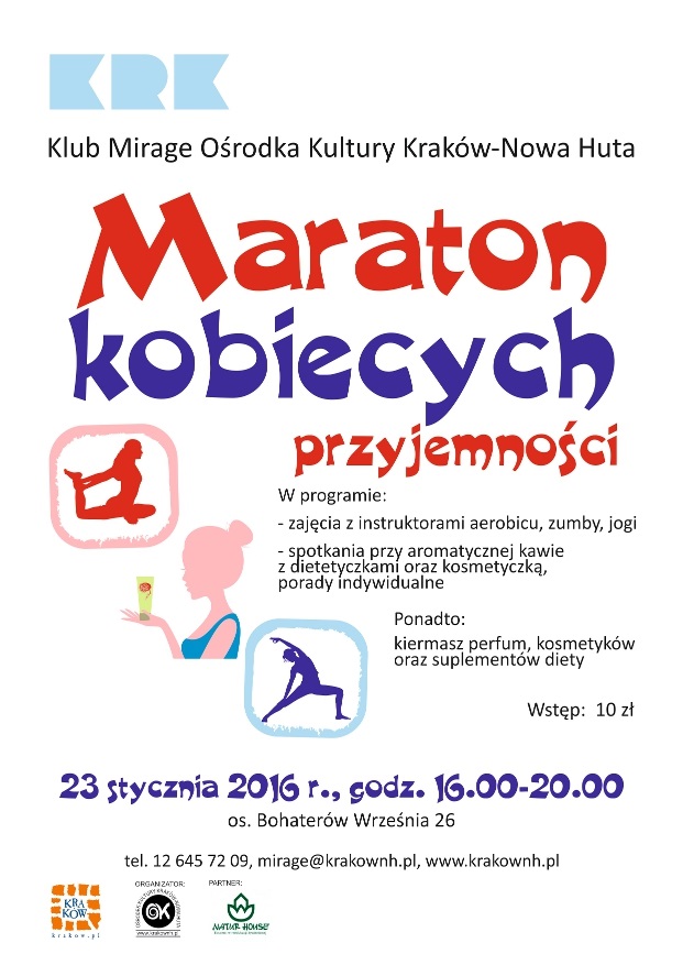 23.01. GODZ. 16.00, MARATON KOBIECYCH PRZYJEMNOŚCI W styczniowe sobotnie popołudnie Klub Mirage zaprasza panie na Maraton kobiecych przyjemności.
