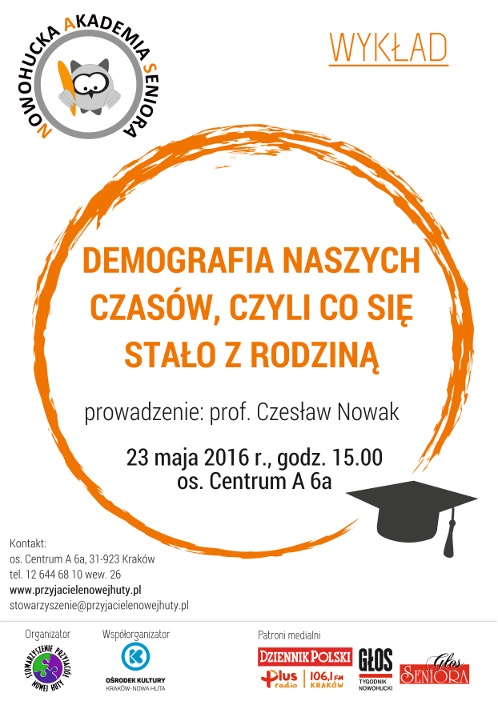 23.05., GODZ. 15.00, WYKŁAD: CO SIĘ STAŁO Z RODZINĄ? Nowohucka Akademia Seniora (os. Centrum A 6a)