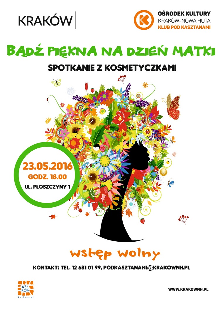 23.05., GODZ 18:00, BĄDŹ PIĘKNA NA DZIEŃ MATKI Klub Pod Kasztanami Ośrodka Kultury Kraków-Nowa Huta (ul. Płoszczyny 1)