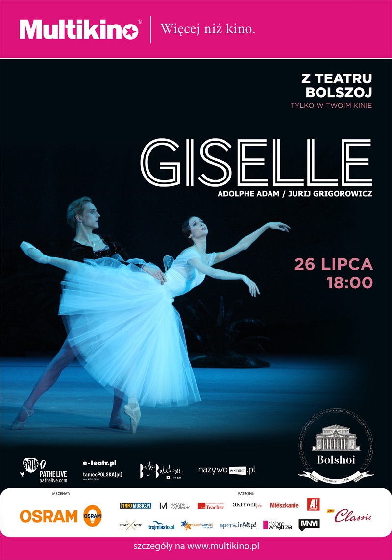 26 lipca br. o godzinie 18.00 Multikino zaprasza na retransmisję baletu „Giselle” z Teatru Bolszoj. Pokaz odbędzie się w wybranych kinach sieci Multikino w ramach letnich powtórek.