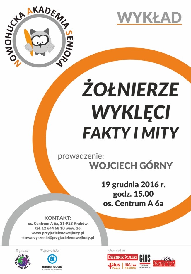 19.12. GODZ. 15.00, WYKŁAD: ŻOŁNIERZE WYKLĘCI Nowohucka Akademia Seniora (os. Centrum A 6a)