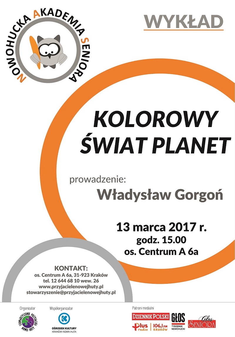 13.03. GODZ. 15.00, WYKŁAD: KOLOROWY ŚWIAT PLANET Nowohucka Akademia Seniora (os. Centrum A 6a)
