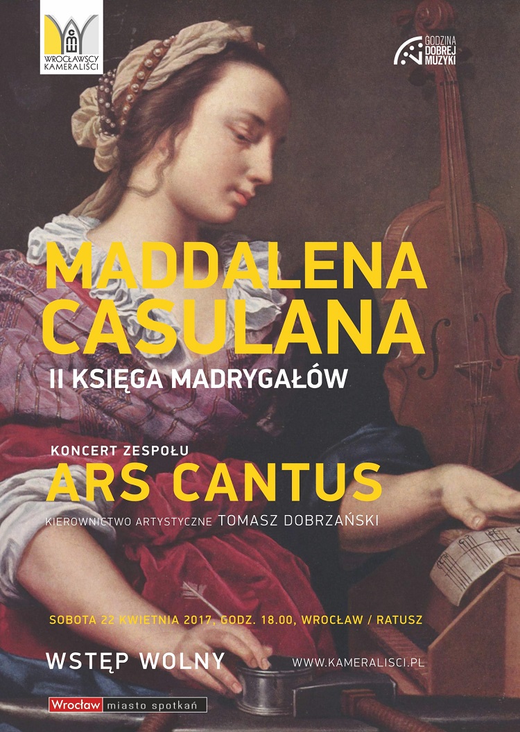 Najbliższy koncert wrocławskiego zespołu muzyki dawnej Ars Cantus to możliwość zetknięcia się z twórczością kompozytorki żyjącej w czasach, w których pozycja społeczna kobiety nie predestynowała jej do zawodów artystycznych, a muzyka była zdecydowanie domeną mężczyzn. Maddalena Casulana (ok. 1544 – ok. 1590) była śpiewaczką i lutnistką. Jako kompozytorka była pierwszą kobietą w historii, której utwory, i to kilkakrotnie, zostały wydane drukiem. Niewiele wiadomo o jej życiu – podróżowała do Werony, Mediolanu oraz do Wenecji, gdzie ukazywały się drukiem jej utwory, odbyła też wizytę na dworze francuskim. W dedykacji do pierwszej księgi madrygałów dla Isabelli d’Este kompozytorka pisze, że pragnęła pokazać światu, że mężczyźni się mylą uważając, że tylko oni posiadają zdolność tworzenia sztuki. Styl kompozytorski Maddaleny Casulany unika eksperymentów, wyrafinowanego kontrapunktu i chromatyki, jest melodyjny i nacechowany wrażliwością na oddanie dźwiękami subtelności tekstu w poszukiwaniu ulotnego nastroju.