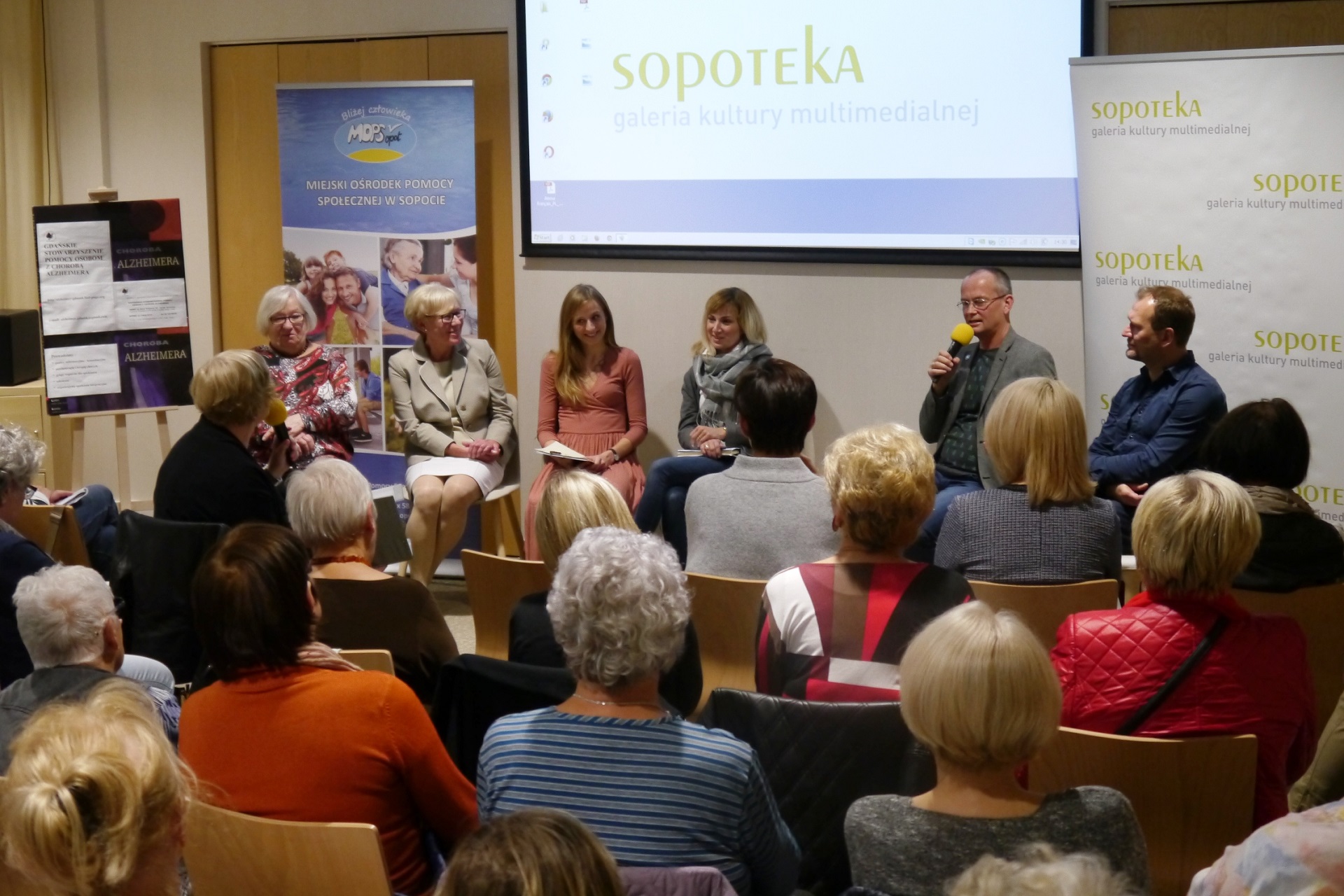 W debacie, która była ważnym punktem spotkania uczestniczyli przedstawiciele instytucji i organizacji wspierających osoby z demencją oraz ich opiekunów: Mirosława Józefowicz - Gdańskie Stowarzyszenie Pomocy Osobom z Chorobą Alzheimera, Małgorzata Chrzanowska, psycholog Miejski Ośrodek Pomocy Społecznej w Sopocie, Roksana Kaczmarek, kierownik Środowiskowego Domy Samopomocy dla osób z zaburzeniami pamięci, Fundacja Niesiemy Pomoc, Weronika Wańska, psycholog, Dom Pomocy Społecznej w Sopocie oraz Michał Zabłocki.