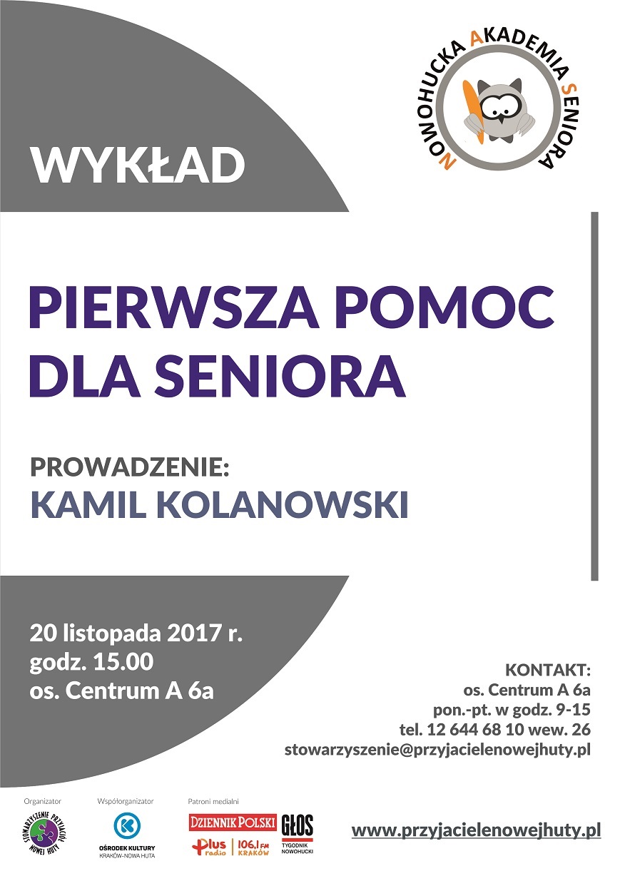 20.11. GODZ. 15.00, WYKŁAD – PIERWSZA POMOC DLA SENIORA