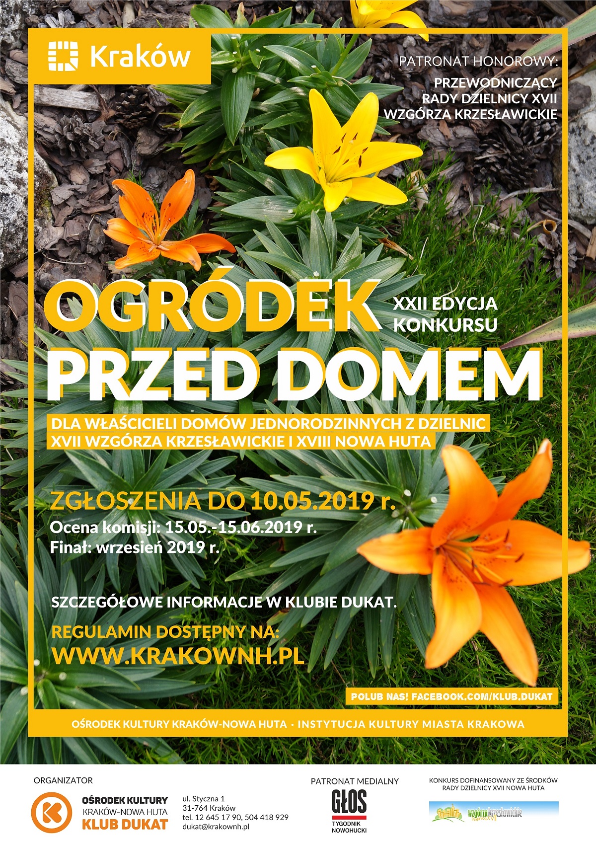 Już po raz dwudziesty drugi Klub Dukat Ośrodka Kultury Kraków-Nowa Huta zaprasza mieszkańców domów jednorodzinnych Dzielnicy XVII Wzgórza Krzesławickie i XVIII Nowa Huta do udziału w konkursie Ogródek przed domem.